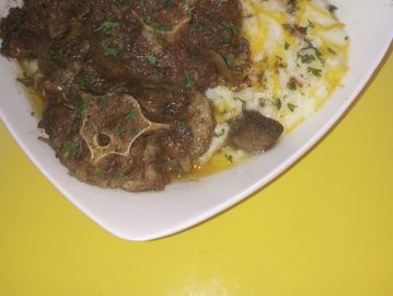 pepper steak seasoned good with rice and 2 sides of your choice.